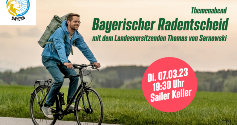 Grüner Themenabend 7. März 2023: Thema Radentscheid und Besuch des Landesvorsitzenden Thomas von Sarnovski März 14, 2023März 14, 2023 Anwesend: ca. 30 Personen Wir radelten zusammen mit unseren Landesvorsitzenden Thomas v. Sarnovski an kritische Stellen im Stadtgebiet. Vom Bahnhof kommend über die Äußeren Rosenheimer Straße zur Wegscheid, die neu […]